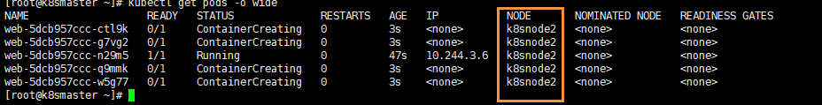 我们可以非常明显的看到,这个Pod已经被分配到 k8snode1 节点上了